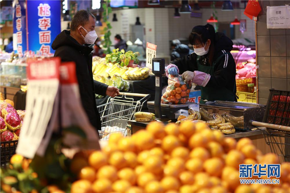2022年1月1日,西安市浐灞生態(tài)區(qū)一小區(qū)內(nèi),市民正在小區(qū)內(nèi)的超市中選購(gòu)水果。新華網(wǎng) 王智超攝