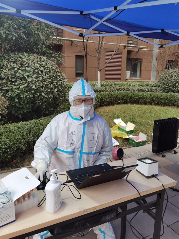 “街坊們,來來來!做核酸檢測,請先到這邊來登記。”身處經(jīng)開區(qū)的劉璇和向權(quán)在接到公司黨委號召后,積極申請參與白樺林社區(qū)的抗“疫”志愿服務(wù)。向權(quán)是一位湖南籍的小伙,和劉璇都是單位的青年職工,作為青年情侶抗“疫”志愿者的他們,主動為社區(qū)居民提供貼心服務(wù),認(rèn)真做好維護(hù)現(xiàn)場秩序、協(xié)助登記信息、宣傳防疫知識、排查統(tǒng)計(jì)居民困難等工作,積極充當(dāng)著守門員、宣傳員、信息監(jiān)督員和跑腿員,用青春力量構(gòu)建起一條條保障防線。“疫”路難行,你我同在,兩人在服務(wù)過程中耐心的勸導(dǎo)、詳細(xì)的詢問和解答都得到了小區(qū)居民的一致好評。“在一次排查獨(dú)居老人困難情況時,碰到一位曾從事水利工程工作的87歲清華畢業(yè)老人,這位老人與我們分享了很多工作事跡。”向權(quán)分享這一幕經(jīng)歷時他覺得無比親切與感動。