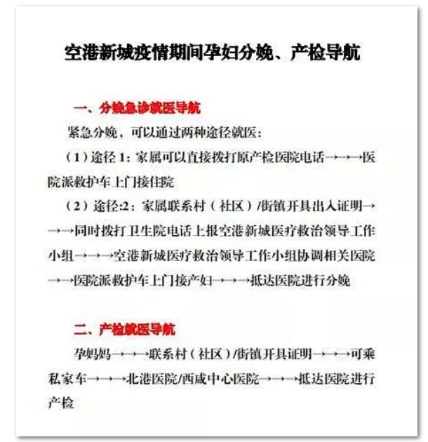 為了便于孕媽媽們更系統(tǒng)的了解就診流程,胡偉超還會同北杜衛(wèi)生院吳新雷,醫(yī)療救治工作領(lǐng)導小組張亮、呂琳連夜制作了《空港新城疫情期間孕婦分娩、產(chǎn)檢導航》,詳細介紹各類情況的流程。