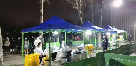 檢測過程中,所有檢測人員都身著防護服,為了節(jié)約醫(yī)療物資,避免讓大家在寒風中等待,志愿者幾乎不吃飯、不喝水,連續(xù)工作直到檢測結束。也正因為有了他們的堅守,西電疫情防控工作才有了堅強保障。