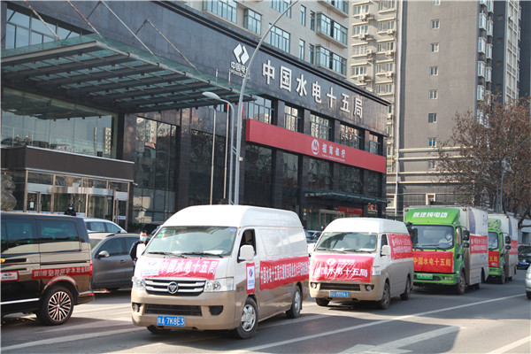 西部決策網(wǎng)訊 “出發(fā)!”1月11日下午14:00,隨著公司黨委書記、董事長梁向峰一聲令下,滿載 3000斤面粉、3000斤大米、 1000斤食用油、1000斤各類蔬菜、500斤大肉、200斤牛肉、200斤羊肉、400箱牛奶酸奶、500斤速凍水餃、1000箱衛(wèi)生紙、2200瓶洗發(fā)露、2200袋洗衣液等抗疫生活物資的8輛貨車,再次從中國水電十五局水電大廈樓前出發(fā),送往陜西職業(yè)技術(shù)學(xué)院。
