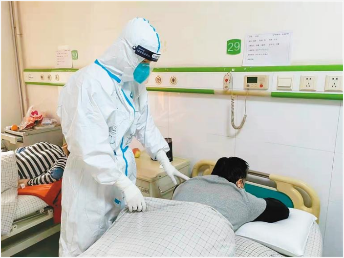 朱長(zhǎng)亮回憶說,第一次直面病毒自己心里也緊張,穿上防護(hù)服感覺非常憋悶,光用鼻子吸氣都不夠,必須張著嘴,進(jìn)倉(cāng)半個(gè)小時(shí)就明顯感覺缺氧了。擔(dān)心憋不住要上廁所,朱長(zhǎng)亮給自己穿上紙尿褲,但他后來發(fā)現(xiàn),只要喝水少就可以不上廁所,所以,在崗的時(shí)間他就不吃不喝。一個(gè)班下來衣服被汗水浸透了,長(zhǎng)時(shí)間戴口罩,他的兩側(cè)臉頰被磨出了水皰……但他說那是黨員醫(yī)務(wù)工作者最美的勛章。