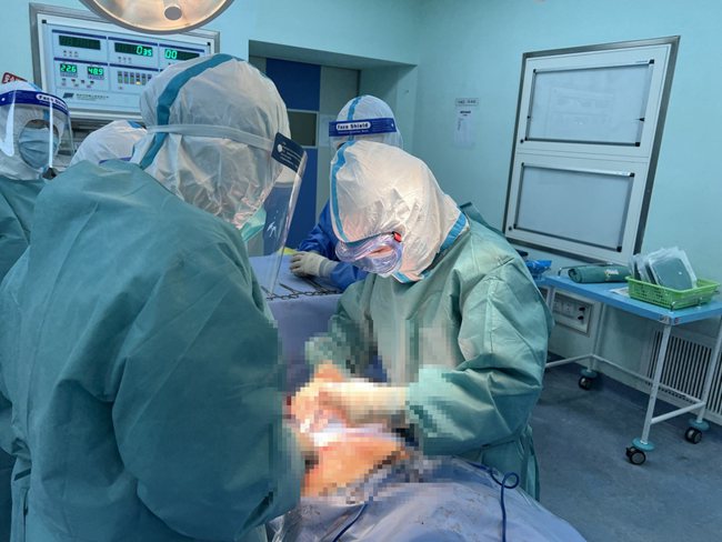 同時,護士長王沛第一時間打開隔離患者專用通道,再一次檢查確認隔離病房的設備情況,做好接收患者的準備。病房醫(yī)生則積極聯(lián)系手術室做好無核酸急診手術準備,僅30分鐘,孕婦就被接往手術室。