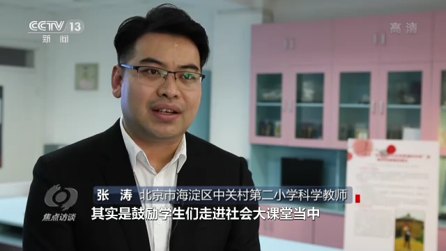 北京市海淀區(qū)中關(guān)村第二小學(xué)科學(xué)教師張濤說:“在這個(gè)過程當(dāng)中,其實(shí)是鼓勵學(xué)生們走進(jìn)社會大課堂當(dāng)中,去發(fā)現(xiàn)生活中的一些科學(xué)問題,收集一手資料,去解決科學(xué)問題。”