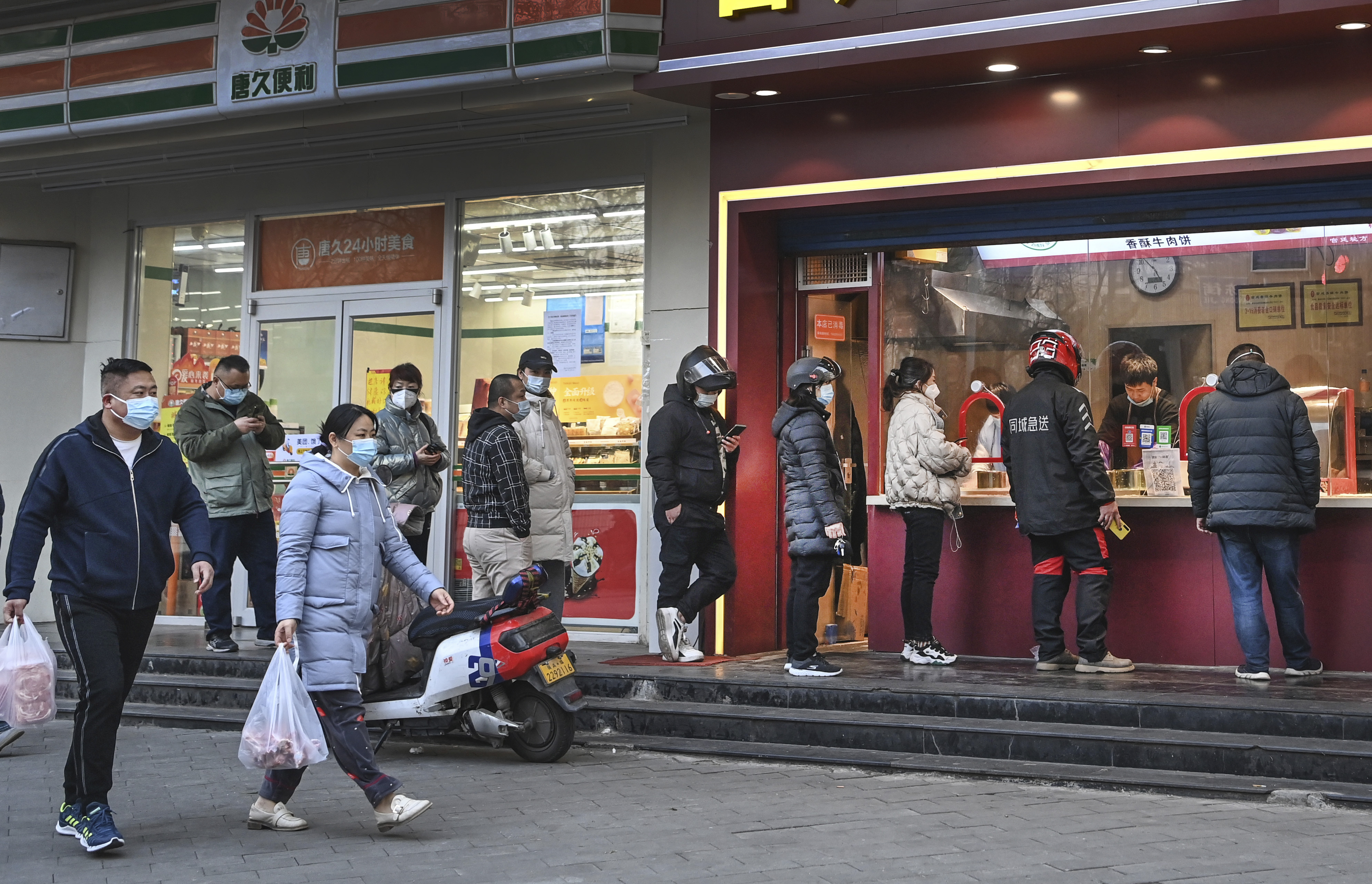 1月17日,人們?cè)谖靼彩斜謪^(qū)一家食品店排隊(duì)購買食品。新華社記者 陶明 攝