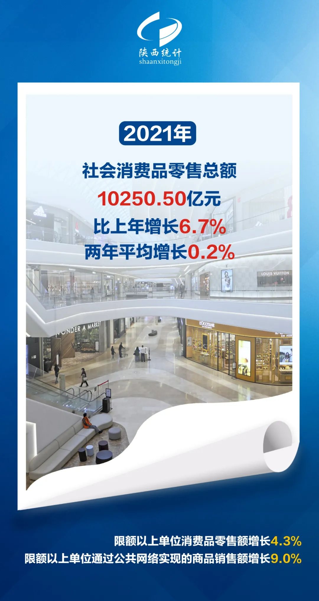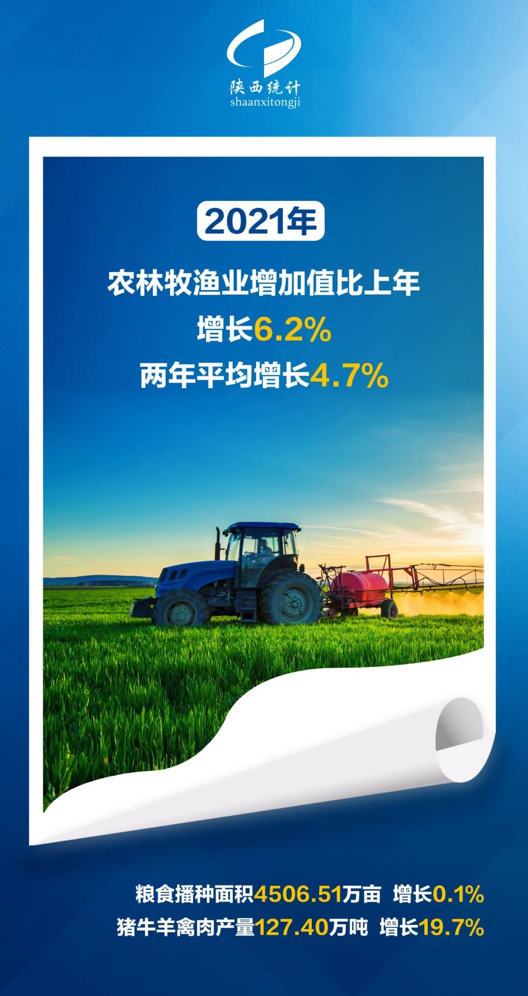 今天(1月19日),陜西省統(tǒng)計局發(fā)布2021年陜西國民經(jīng)濟(jì)運(yùn)行情況。根據(jù)地區(qū)生產(chǎn)總值統(tǒng)一核算結(jié)果,2021年,全省實(shí)現(xiàn)地區(qū)生產(chǎn)總值29800.98億元,按不變價格計算,比上年增長6.5%,兩年平均增長4.3%。其中,第一產(chǎn)業(yè)增加值2409.39億元,增長6.3%,兩年平均增長4.8%;第二產(chǎn)業(yè)13802.52億元,增長5.6%,兩年平均增長3.4%;第三產(chǎn)業(yè)13589.07億元,增長7.3%,兩年平均增長4.9%。