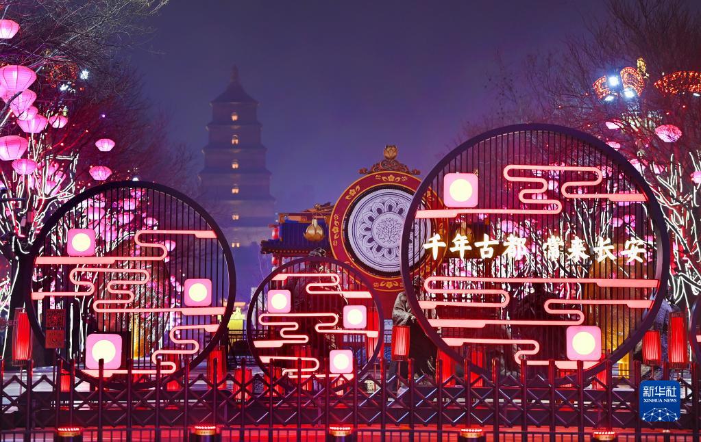 1月21日拍攝的大唐不夜城夜景。春節(jié)臨近,西安市大唐不夜城點亮璀璨奪目的燈光,迎接新春佳節(jié)的到來。新華社記者 陶明 攝
