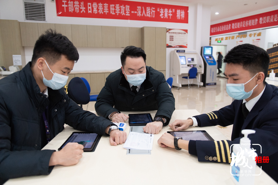 今年是劉曉周第一次參與春運。每一次出發(fā)前,劉曉周都要學(xué)習(xí)最新的個人防護(hù)知識和旅客疫情應(yīng)急處置流程,同時還要充分了解航班始發(fā)地、經(jīng)停地、目的地機(jī)場防疫要求。新華網(wǎng) 耿駿宇 攝 陳雨 文