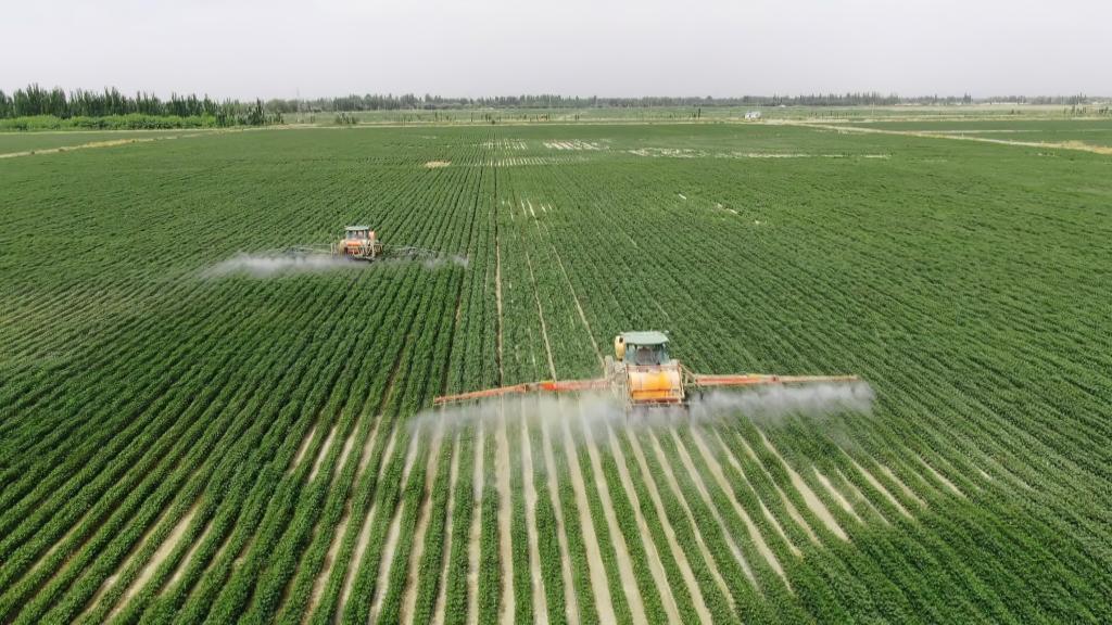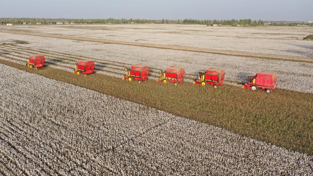 沙雅縣大田里作業(yè)的大型機(jī)械。(受訪(fǎng)者供圖)