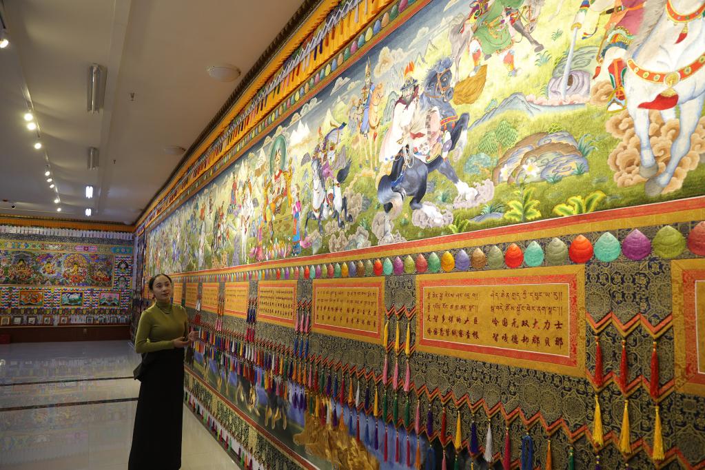 1月24日,青海省海南藏族自治州共和縣一繡坊展廳內(nèi)的藏繡作品。新華社記者央秀達(dá)珍 攝