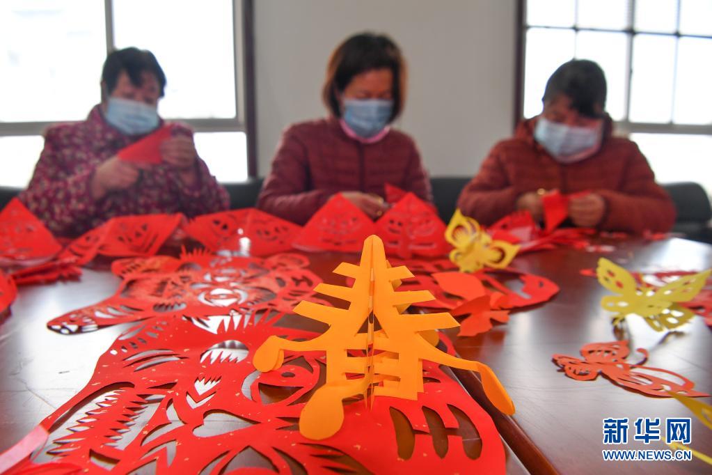 1月27日,西安市鄠邑區(qū)幸福佳苑社區(qū)居民在社區(qū)活動中心剪窗花。新華社記者 張博文 攝