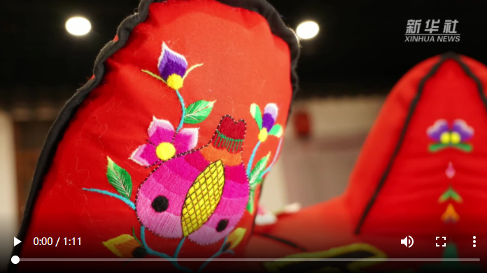 春節(jié)前夕,陜西省寶雞市千陽(yáng)縣組織繡娘制作了一只長(zhǎng)1.85米的布老虎,喜迎農(nóng)歷虎年。