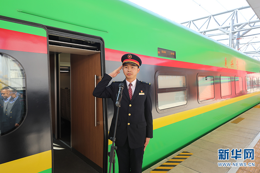 2021年12月3日,中老鐵路正式通車,開辟了中國國際鐵路運(yùn)輸新紀(jì)元,那一天,胡堅(jiān)站在站臺上,代表中國鐵路火車司機(jī)請示發(fā)車。(新華網(wǎng) 范芳鈺/文 昆明機(jī)務(wù)段供圖)
