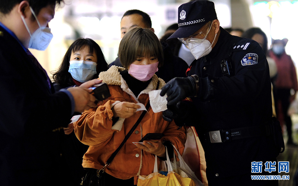乘警蔣大兵引導(dǎo)乘客有序登車。新華網(wǎng)發(fā) 賀瑞明攝