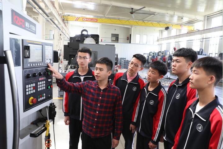 2021年5月8日,河北省河間市職業(yè)教育中心教師在河間市一家企業(yè)為學生講解機床實操。新華社記者 駱學峰 攝