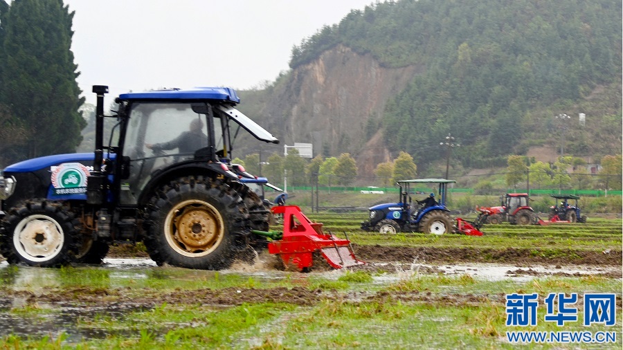 在江西省宜春市袁州區(qū)寨下鎮(zhèn)塘下村的高標(biāo)準(zhǔn)農(nóng)田內(nèi),隨著機(jī)耕道、農(nóng)田水利設(shè)施的配備,村民們的耕作效率有了顯著提升。新華網(wǎng)發(fā) 劉承良 攝
