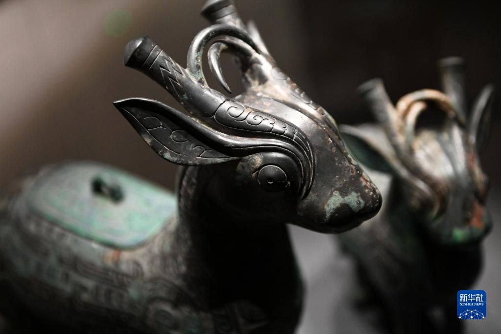 這是陜西考古博物館展出的寶雞石鼓山商周墓地出土的犧尊(4月28日攝)。新華社記者 李一博 攝