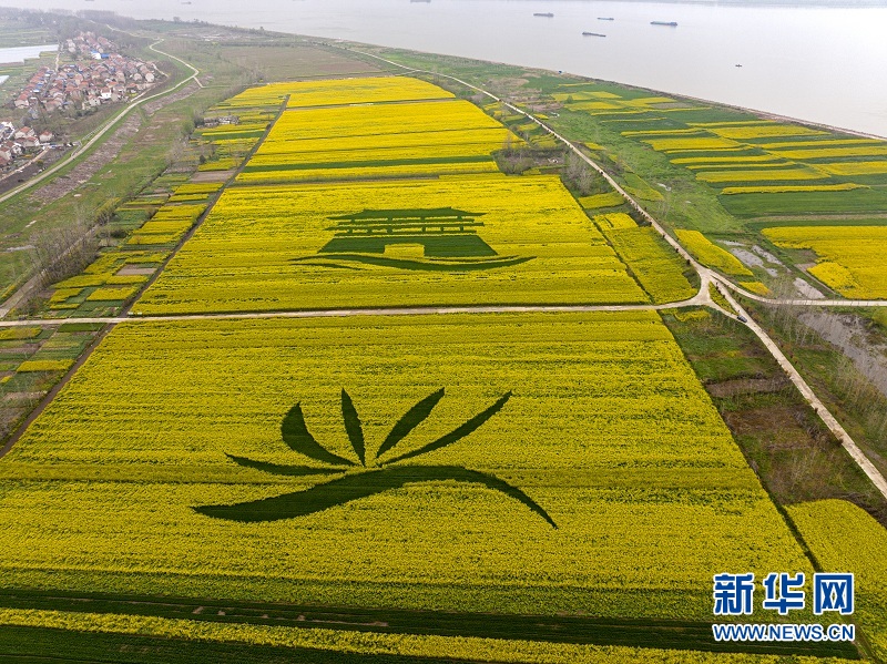 鄂州湖北現(xiàn)代農(nóng)業(yè)科技創(chuàng)新與集成示范基地。從空中俯瞰,大片大片金黃的油菜花田里,鑲嵌著由一片綠色植物組成的圖案,綠黃分明,映襯出“鄂州基地”“中國飯碗”幾個大字。