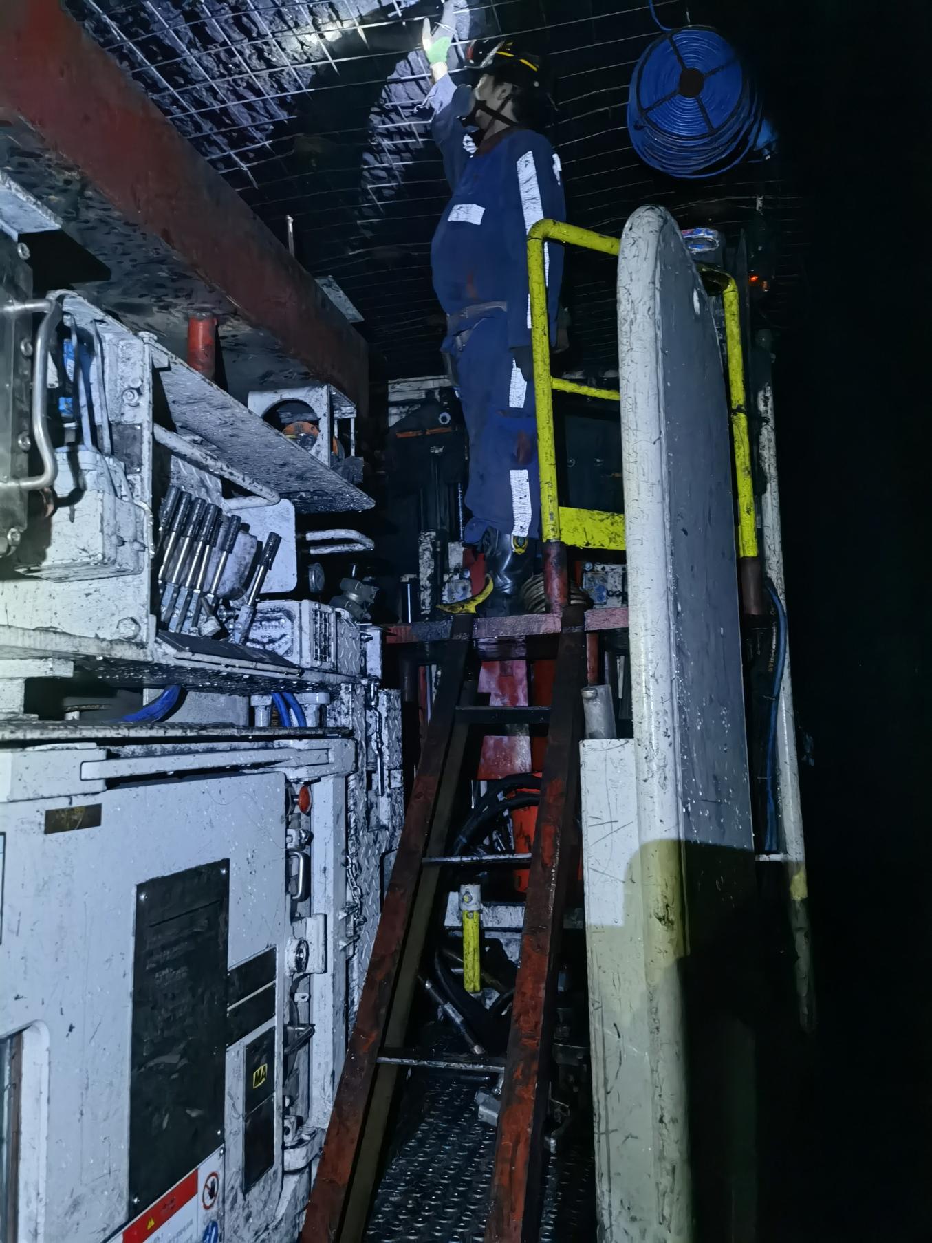 讓支護(hù)更高效。掘錨一體機(jī)和傳統(tǒng)的連采機(jī)相比,最大的優(yōu)勢(shì)就是可以實(shí)現(xiàn)掘支平行作業(yè),但由于出廠設(shè)計(jì)與作業(yè)現(xiàn)場(chǎng)要求存在偏差,支護(hù)人員操作平臺(tái)離頂板距離達(dá)3米,支護(hù)頂錨時(shí)需要站在臨時(shí)放置的凳子上進(jìn)行作業(yè),這樣操作,一是存在安全隱患,二是支護(hù)效率低下,嚴(yán)重影響掘進(jìn)速度。為此,該工區(qū)職工經(jīng)過(guò)現(xiàn)場(chǎng)摸索,決定焊接一個(gè)支護(hù)工操作平臺(tái),以此來(lái)解決支護(hù)工站位;將鉆臂操作面板位置進(jìn)行上移,易于支護(hù)工操作手柄;在掘錨機(jī)機(jī)身上焊接支護(hù)材料架,易于人員拿取錨桿等材料;操作平臺(tái)必須便于拆卸,不能焊死,設(shè)備出現(xiàn)故障又不影響設(shè)備檢修。