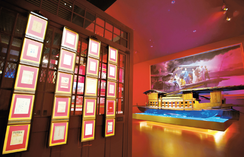 圖為中國(guó)共產(chǎn)黨歷史展覽館中嘉興南湖紅船場(chǎng)景展出。 劉新武/攝