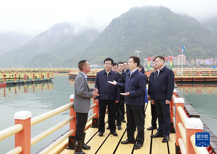 5月23日至24日,中共中央政治局常委、國務(wù)院副總理韓正在福建寧德、福州、漳州調(diào)研。這是5月23日,韓正在福安“藍(lán)海漁歌”海上綜合整治展示平臺(tái)調(diào)研。新華社記者 丁林 攝