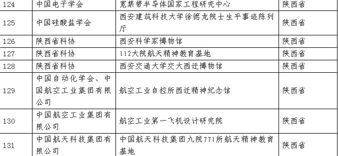 5月30日,中國科協(xié)正式發(fā)布了2022年度科學(xué)家精神教育基地名單,來自陜西的西安交通大學(xué)交大西遷博物館、西安科學(xué)家博物館、中國航天科技集團(tuán)九院771所航天精神教育基地、西安建筑科技大學(xué)徐德龍?jiān)菏可绞论E陳列廳等8個(gè)基地入選。