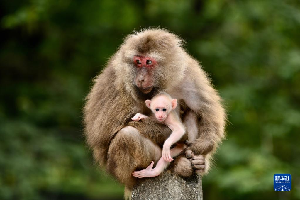 武夷山桐木村橋頭的野生藏酋猴(2021年5月16日攝)。新華社記者 姜克紅 攝