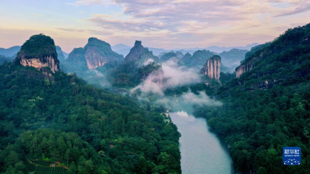 武夷山九曲溪兩岸的丹霞景觀(6月7日攝,無人機(jī)照片)。新華社記者 姜克紅 攝