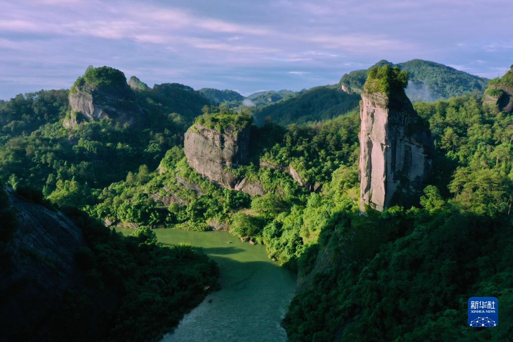 武夷山的自然風(fēng)光獨(dú)樹一幟,核心景區(qū)屬丹霞地貌,景區(qū)內(nèi)一條幽深清澈的九曲溪盤環(huán)山中,兩岸丹崖林立,千姿百態(tài)。千百年來,得天獨(dú)厚的地理環(huán)境和自然條件,孕育了武夷山舉世稱奇的生物多樣性。