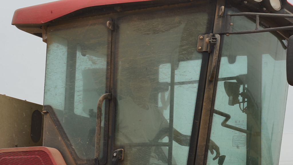 鐘正云摘下口罩,曬得黝黑的臉上落了許多細(xì)碎的麥茬,靠在椅背上稍事休息,等妻子跟主人家商量完畢,再開著收割機(jī),趕往下一塊豐收的麥田。