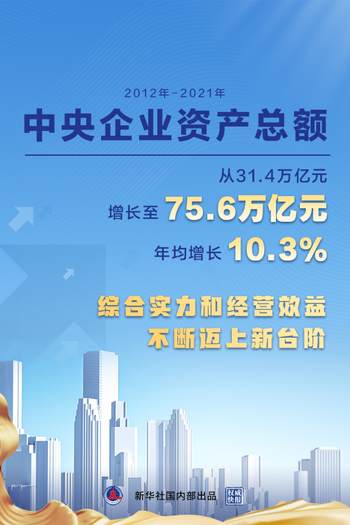 中央企業(yè)資產總額從2012年底的31.4萬億元增長至2021年底的75.6萬億元