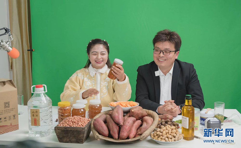 圖為黃岡市浠水縣“網(wǎng)紅”主播直播帶貨助農(nóng)銷售。新華網(wǎng)發(fā)