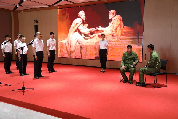 “還我青島,保衛(wèi)主權(quán),國(guó)家有難,匹夫有責(zé)……”機(jī)電物資中心組建了20多人的團(tuán)隊(duì),將《建黨偉業(yè)》中的經(jīng)典片段搬上了舞臺(tái),讓臺(tái)下觀(guān)眾聽(tīng)來(lái)無(wú)不熱血沸騰、慷慨激昂。