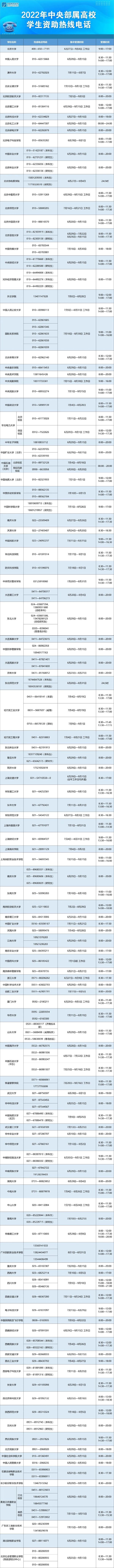 教育部要求各?。▍^(qū)、市)及所屬高校、中央高校學(xué)生資助管理部門均開通熱線電話,并結(jié)合實(shí)際情況自行確定集中受理時(shí)段和具體受理時(shí)間。