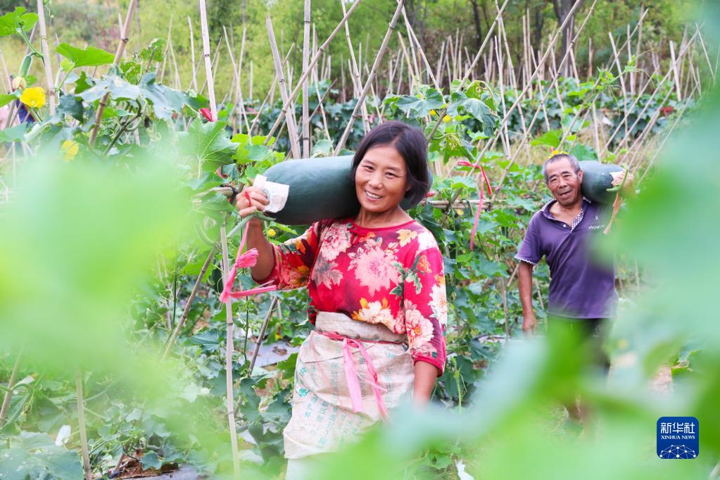 9月1日,湖南省永州市新田縣陶嶺鎮(zhèn)牛塘村村民在采收冬瓜。新華社發(fā)(劉貴雄 攝)