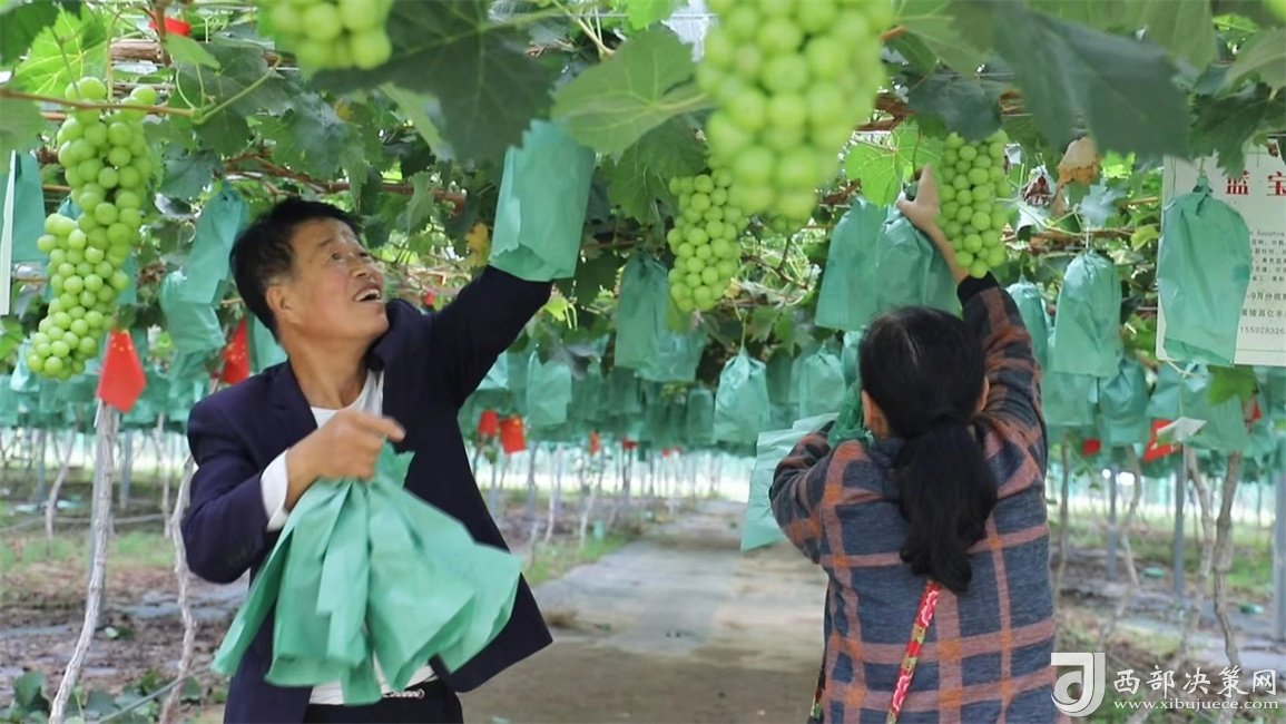 西部決策網(wǎng) 初秋時(shí)節(jié),來到黃陵縣阿黨鎮(zhèn)北村億豐玫瑰葡萄園內(nèi),滿園的豐收景象,禁不住讓人喜上眉梢。藤架上,一串串晶瑩剔透的果實(shí)透著陽光的味道,令人口舌生津、垂涎欲滴,咬一顆放進(jìn)口中,香甜的汁液溢滿舌尖,幸福的甜蜜充滿周身……
