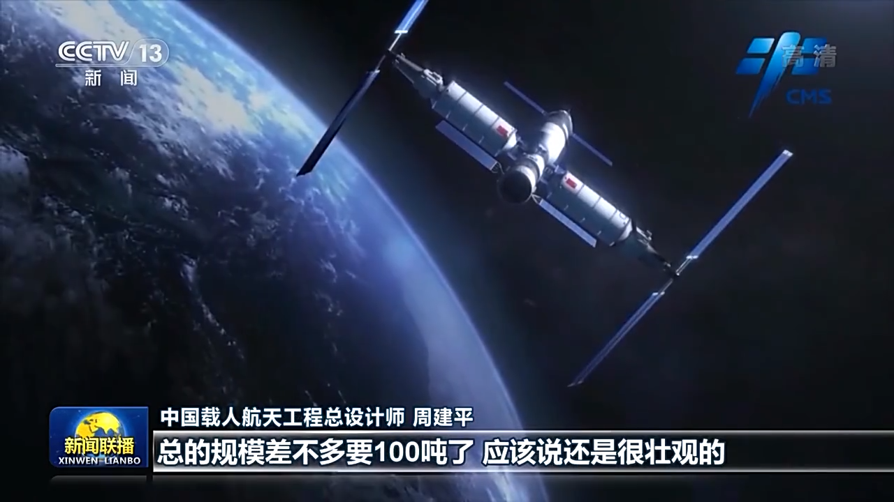 中國載人航天工程總設(shè)計師 周建平:總書記一直把航天強國建設(shè),作為實現(xiàn)中華民族偉大復(fù)興中的一個重要的組成部分。中國空間站最大構(gòu)型就是三艙三船,總的規(guī)模差不多要100噸,應(yīng)該說還是很壯觀的。