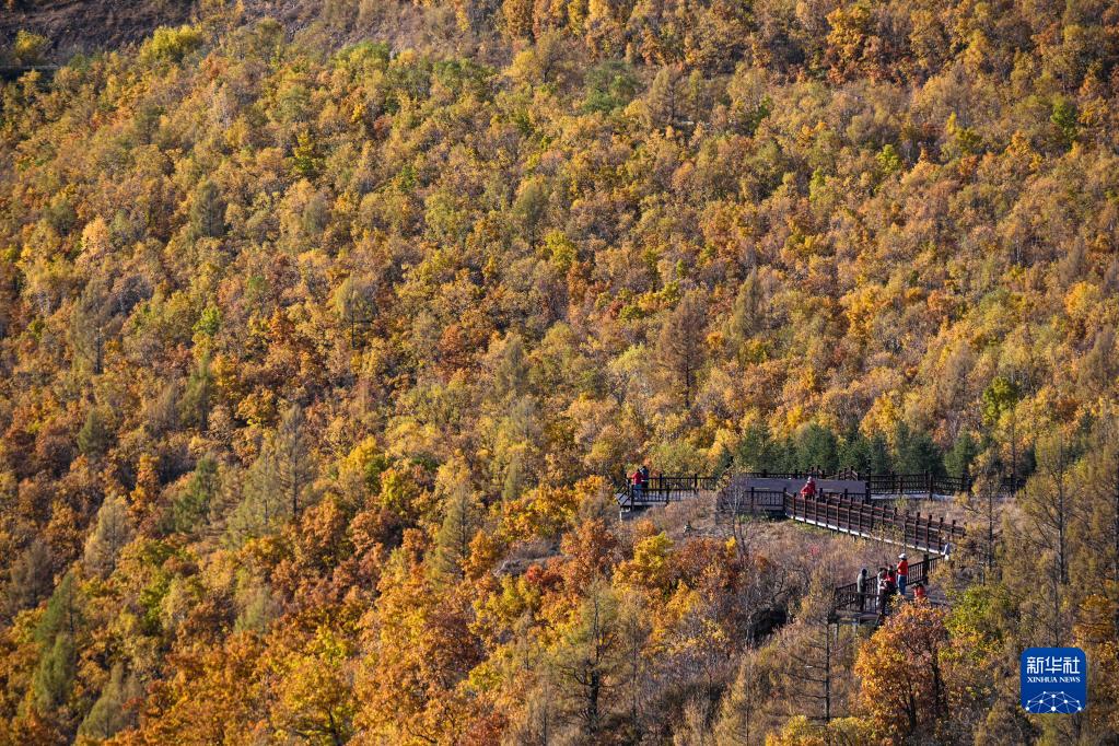 游客在扎蘭屯市柴河鎮(zhèn)十大灣欣賞秋日風(fēng)光(9月27日攝)。新華社記者 恩浩 攝