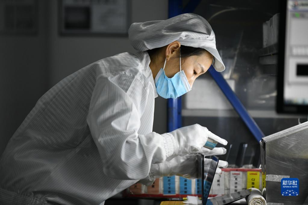 在隆基綠能科技股份有限公司西安切片工廠,工人在進(jìn)行檢測包裝作業(yè)(2022年1月18日攝)。新華社記者 李一博 攝