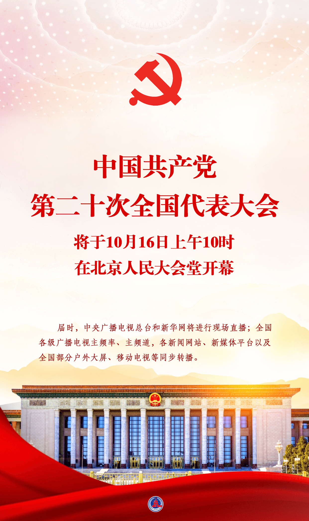 中國共產(chǎn)黨第二十次全國代表大會(huì)將于16日上午10時(shí)在北京人民大會(huì)堂開幕。