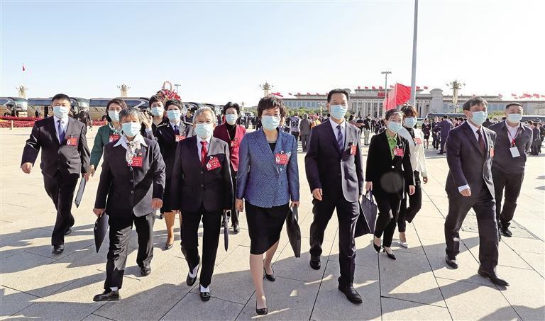 晴空如洗,朝陽吐輝。“就要去見證盛會了!”出席黨的二十大的陜西代表們難掩激動的心情。臨近9時(shí),代表們乘坐大巴車從住地出發(fā),駛向天安門廣場,駛向期待已久的盛會現(xiàn)場。