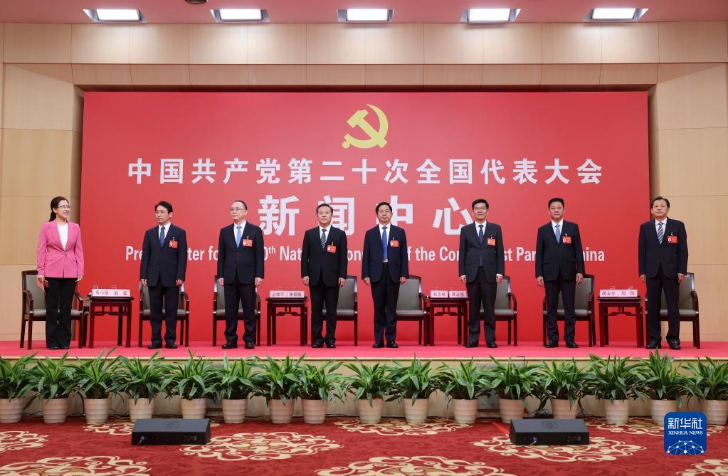 10月18日,中國共產(chǎn)黨第二十次全國代表大會(huì)新聞中心舉行集體采訪,請(qǐng)北京、天津、河北、山西、內(nèi)蒙古、遼寧、吉林代表團(tuán)新聞發(fā)言人出席,介紹代表團(tuán)學(xué)習(xí)討論二十大報(bào)告情況,并回答記者提問。新華社記者 陳建力 攝