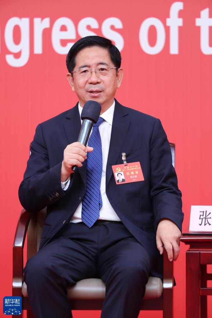 10月18日,中國共產(chǎn)黨第二十次全國代表大會(huì)新聞中心舉行集體采訪,請(qǐng)北京、天津、河北、山西、內(nèi)蒙古、遼寧、吉林代表團(tuán)新聞發(fā)言人出席,介紹代表團(tuán)學(xué)習(xí)討論二十大報(bào)告情況,并回答記者提問。這是山西省委常委、常務(wù)副省長張吉福在回答記者提問。新華社記者 陳建力 攝