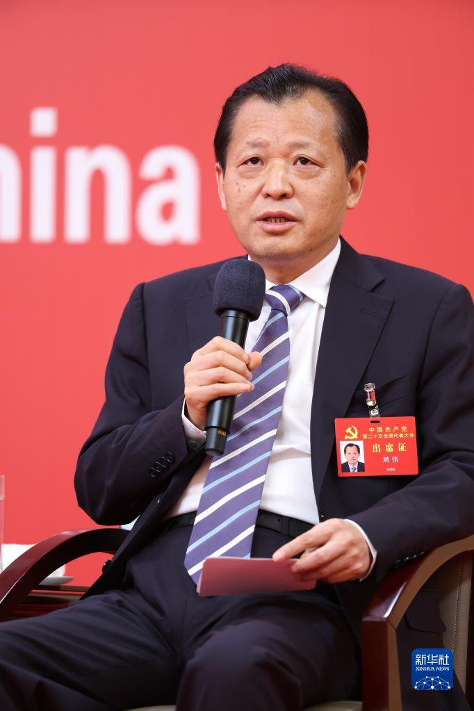 10月18日,中國共產(chǎn)黨第二十次全國代表大會(huì)新聞中心舉行集體采訪,請(qǐng)北京、天津、河北、山西、內(nèi)蒙古、遼寧、吉林代表團(tuán)新聞發(fā)言人出席,介紹代表團(tuán)學(xué)習(xí)討論二十大報(bào)告情況,并回答記者提問。這是吉林省委副書記劉偉在回答記者提問。新華社記者 陳建力 攝