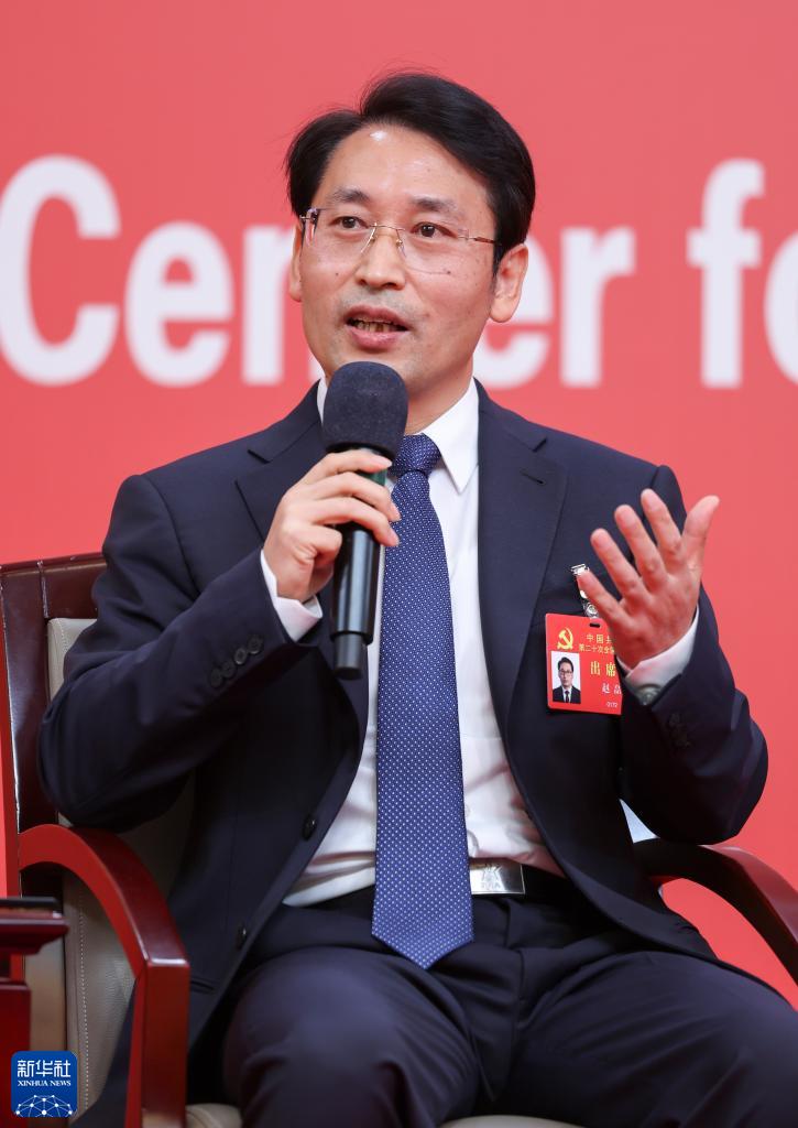 10月18日,中國共產(chǎn)黨第二十次全國代表大會(huì)新聞中心舉行集體采訪,請(qǐng)北京、天津、河北、山西、內(nèi)蒙古、遼寧、吉林代表團(tuán)新聞發(fā)言人出席,介紹代表團(tuán)學(xué)習(xí)討論二十大報(bào)告情況,并回答記者提問。這是北京市委常委、秘書長趙磊在回答記者提問。新華社記者 陳建力 攝