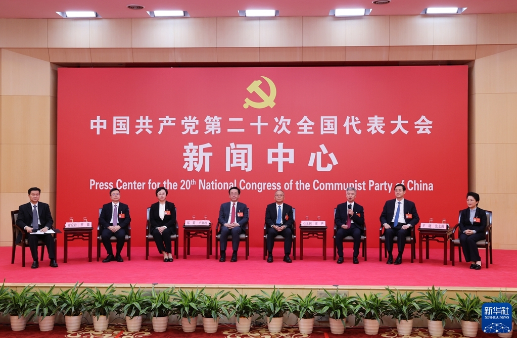 10月19日,中國(guó)共產(chǎn)黨第二十次全國(guó)代表大會(huì)新聞中心舉行集體采訪。重慶、四川、貴州、云南、西藏、陜西、甘肅代表團(tuán)新聞發(fā)言人出席,介紹代表團(tuán)學(xué)習(xí)討論二十大報(bào)告情況,并回答記者提問。新華社記者 張玉薇 攝