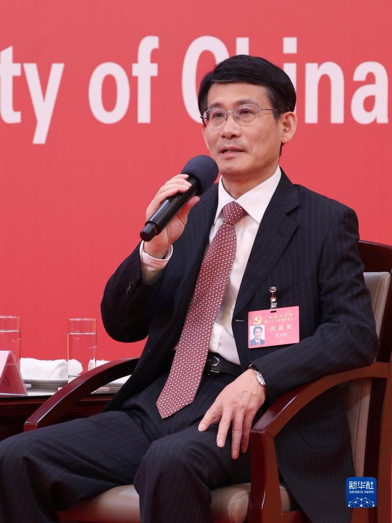 這是海南省委常委、常務副省長沈丹陽在回答記者提問。新華社記者 張玉薇 攝