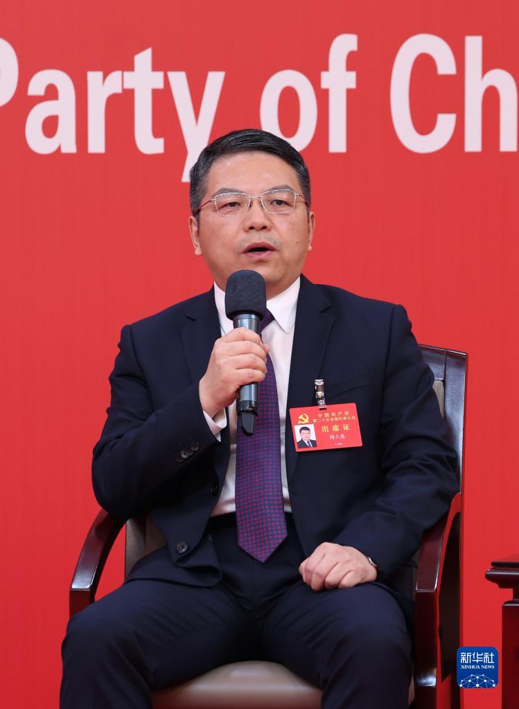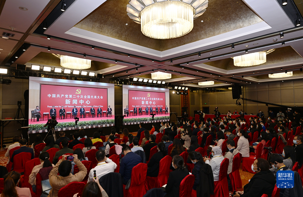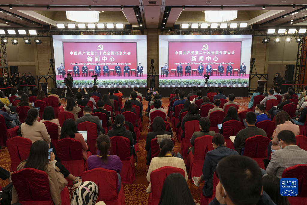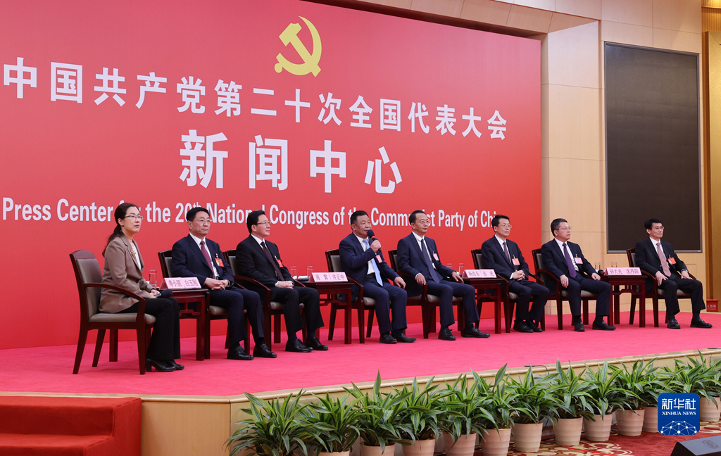 10月19日,中國共產(chǎn)黨第二十次全國代表大會新聞中心舉行集體采訪。山東、河南、湖北、湖南、廣東、廣西、海南代表團新聞發(fā)言人出席,介紹代表團學習討論二十大報告情況,并回答記者提問。新華社記者 陳建力 攝