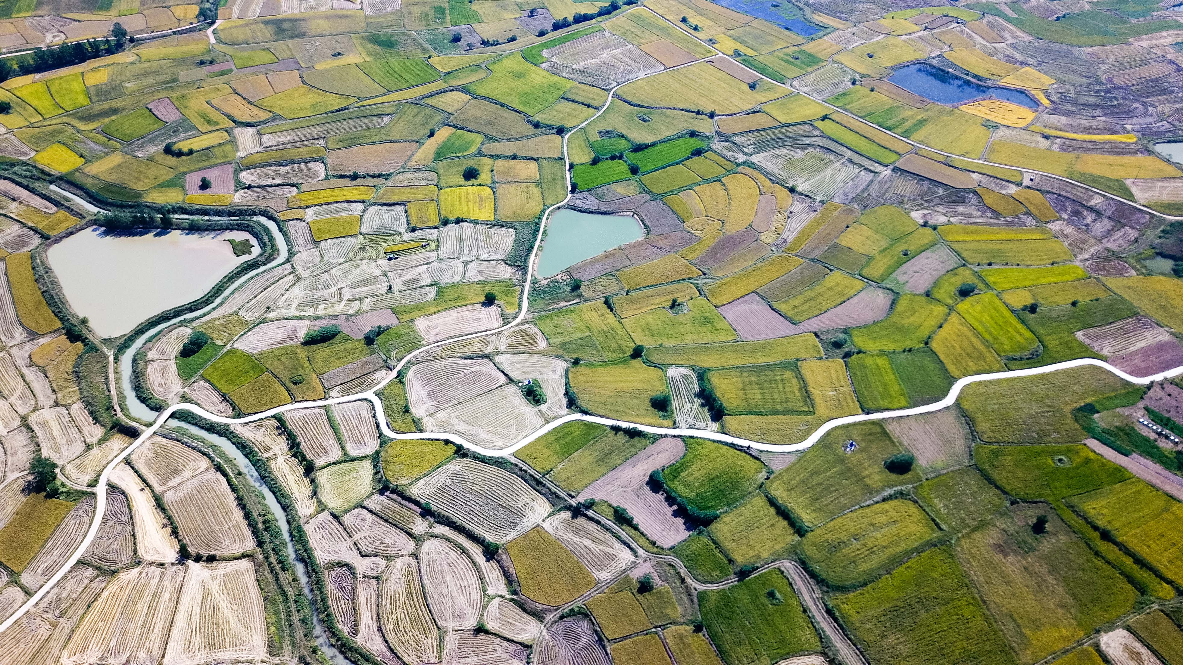 安徽省鳳陽縣小崗村的田野景象(2018年9月27日攝,無人機照片)。新華社記者 張端 攝