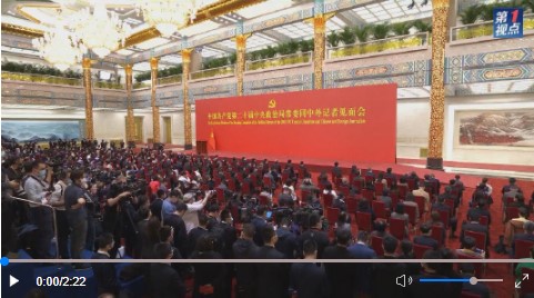 剛剛在中國共產(chǎn)黨第二十屆中央委員會第一次全體會議上當選的中共中央總書記習近平和中共中央政治局常委李強、趙樂際、王滬寧、蔡奇、丁薛祥、李希,23日中午在人民大會堂同采訪中共二十大的中外記者親切見面。